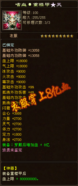 版本特色:裸满神器进阶系统,神兽神器领取2000万人物属性神器带有兽王咆哮雄霸天下秒杀状态。