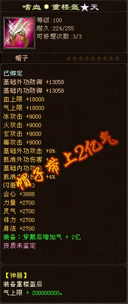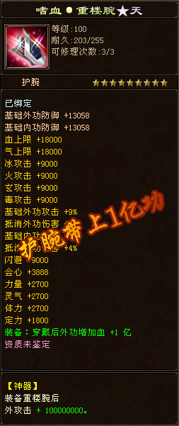 版本特色:所有顶级装备去洛阳领取2000万攻血防,不花钱也一样牛比。